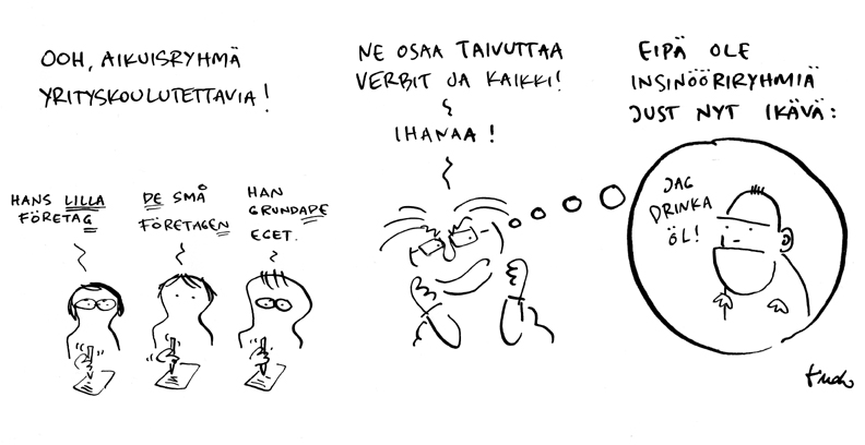 Minähän muuten oon Porvoosta kotoisin ja Porvoon-ruotsi on kyllä ihan oma taitolajinsa. ”Titta titta mamma, jag kellur!” ja ”Det här är just sopiva” -tyyliset lauseet antanevat surkeammallekin kielenopiskelijalle illuusion siitä, ettei se ruotsi nyt niin vaikeaa olekaan… 😉