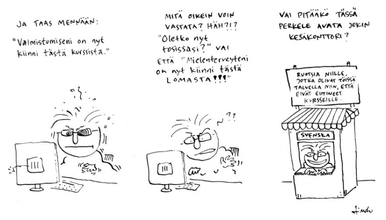 joidenkin mielestä opettajien kesäloma on niin pitkä, että ainakin puolet siitä joutaisi päivystää jossain käytävillä myöhästyneitä töitä odotellen. Lääh, läkähdyttävää.
