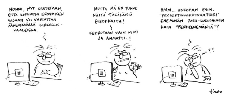 1. Ei siälä Jykylässä olisi tarjolla vaalikonetta, että pääsisit testailemaan kuka olis sun kans asioosta samaa miältä?