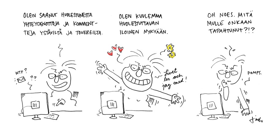 Kyllä sitä varmaan kohta ollaan ihan taas normaaleja itsiämme. Kaikki me 36 sivupersoonaakin. 08.03.2011 | saurau Tykkäätkö? Jaa Facebookissa(Avautuu uudessa ikkunassa) Facebook Jaa X:ssä(Avautuu uudessa ikkunassa) X Share on LinkedIn(Avautuu uudessa ikkunassa) LinkedIn Share on WhatsApp(Avautuu uudessa ikkunassa) WhatsApp Email a link to a friend(Avautuu uudessa ikkunassa) Sähköpostitse Tykkää Lataa... Aiheeseen liittyy