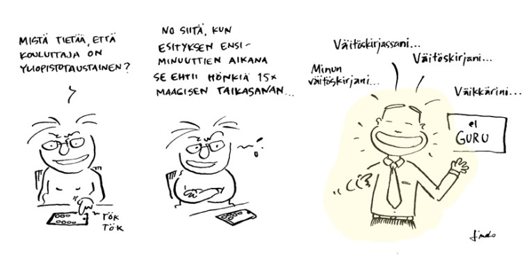– Mutta ihan hyvä koulutus, sanoi maisteri, joka on tietenkin vain kateellinen. 24.03.2011 | saurau Tykkäätkö? Jaa Facebookissa(Avautuu uudessa ikkunassa) Facebook Jaa X:ssä(Avautuu uudessa ikkunassa) X Share on LinkedIn(Avautuu uudessa ikkunassa) LinkedIn Share on WhatsApp(Avautuu uudessa ikkunassa) WhatsApp Email a link to a friend(Avautuu uudessa ikkunassa) Sähköpostitse Tykkää Lataa... Aiheeseen liittyy
