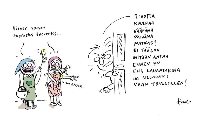 1. Ajateltiin, että varataan trulleille suklaamunia, niin olis virpojille ehkä pitänyt antaa se proverbiaalinen raaka kananmuna.