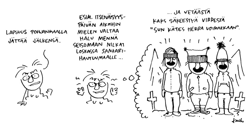Moon asunu niin liki yliopistokaupunkia notta oon tuan kutinan tulles menny aina ylioppilaitten soihtukulkuetta pällistelemähän. Turuss saa oikeen torwisoittokunnan ja kuoron kera laulaa isänmaallis-sotaasia lauluja ja virsiä!