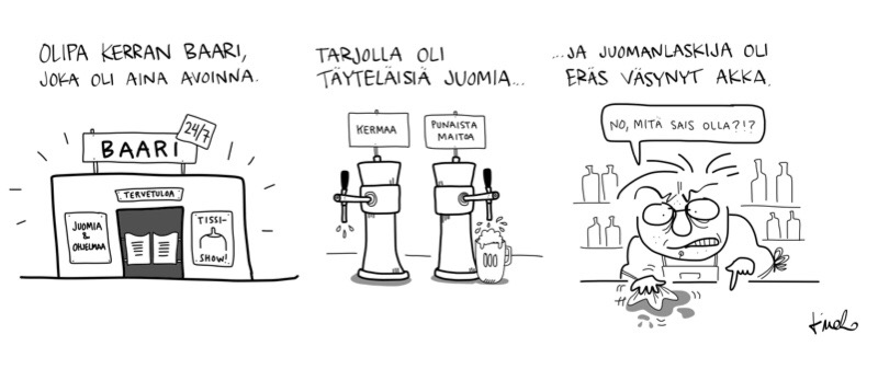 Erään baarin tarina 21.01.2015 | saurau Tykkäätkö? Jaa Facebookissa(Avautuu uudessa ikkunassa) Facebook Jaa X:ssä(Avautuu uudessa ikkunassa) X Share on LinkedIn(Avautuu uudessa ikkunassa) LinkedIn Share on WhatsApp(Avautuu uudessa ikkunassa) WhatsApp Email a link to a friend(Avautuu uudessa ikkunassa) Sähköpostitse Tykkää Lataa... Aiheeseen liittyy