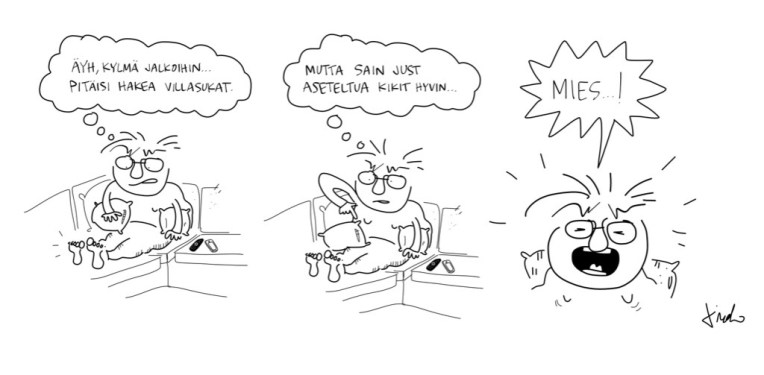 Hitsi, kun en hoksannu. Justihin hain ITTE sukat, ku rupes varpahisihin olohon vilipoonen.