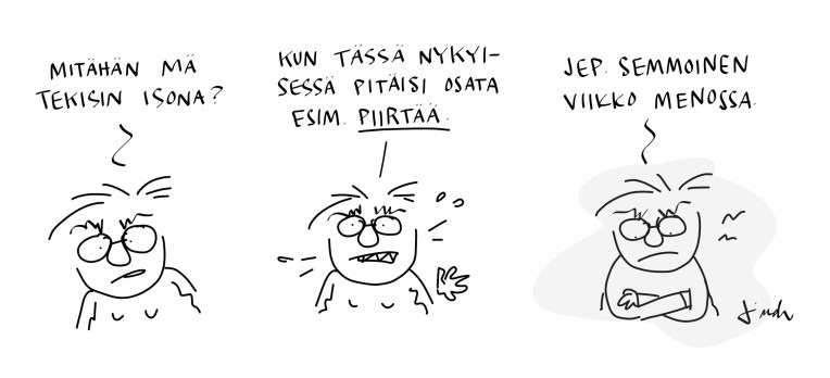 Ja vihdoin pari vuotta piirreltyään hän tajusi sen. 07.03.2017 | saurau Tykkäätkö? Jaa Facebookissa(Avautuu uudessa ikkunassa) Facebook Jaa X:ssä(Avautuu uudessa ikkunassa) X Share on LinkedIn(Avautuu uudessa ikkunassa) LinkedIn Share on WhatsApp(Avautuu uudessa ikkunassa) WhatsApp Email a link to a friend(Avautuu uudessa ikkunassa) Sähköpostitse Tykkää Lataa... Aiheeseen liittyy