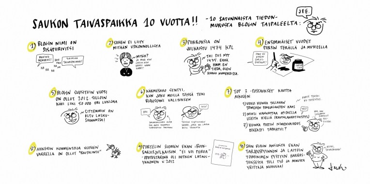 Elokuu on juhlakuu! Saukon Taivaspaikka -sarjisblogi täyttää 10 vuotta 11.8.2019! Otetaanpa varaslähtö synttäreille tämän satunnaiset faktat -postauksen merkeissä.