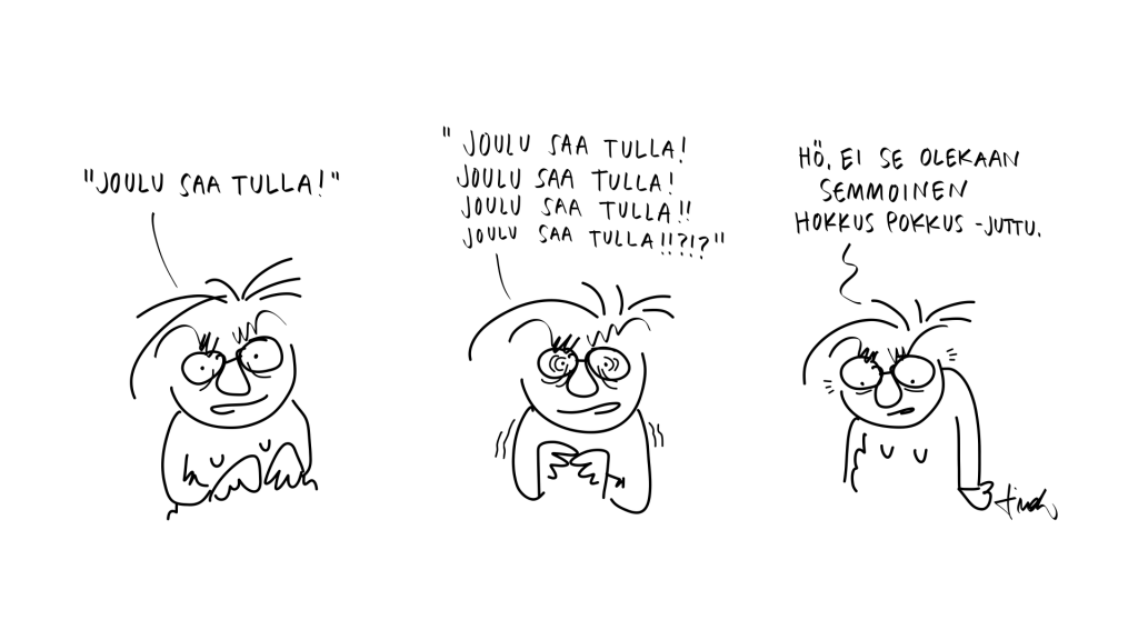 Joulu saa tulla. 21.12.2022 | saurau Tykkäätkö? Jaa Facebookissa(Avautuu uudessa ikkunassa) Facebook Jaa X:ssä(Avautuu uudessa ikkunassa) X Share on LinkedIn(Avautuu uudessa ikkunassa) LinkedIn Share on WhatsApp(Avautuu uudessa ikkunassa) WhatsApp Email a link to a friend(Avautuu uudessa ikkunassa) Sähköpostitse Tykkää Lataa... Aiheeseen liittyy