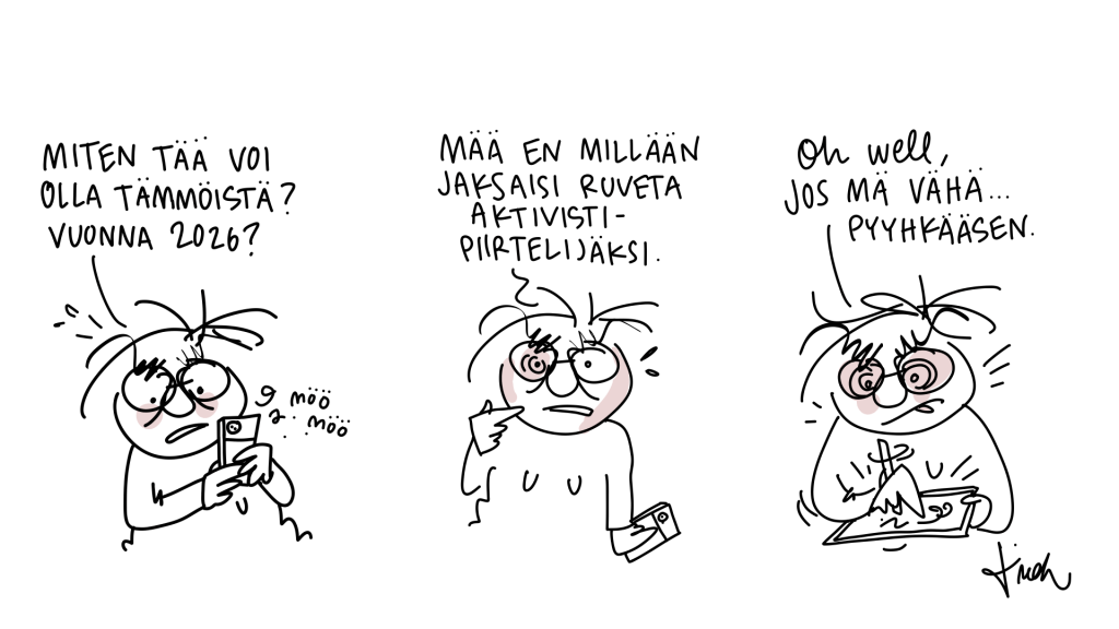 Vaivalloista, mutta minkäs teet 10.03.2026 | saurau Tykkäätkö? Jaa Facebookissa(Avautuu uudessa ikkunassa) Facebook Jaa X:ssä(Avautuu uudessa ikkunassa) X Share on LinkedIn(Avautuu uudessa ikkunassa) LinkedIn Share on WhatsApp(Avautuu uudessa ikkunassa) WhatsApp Email a link to a friend(Avautuu uudessa ikkunassa) Sähköpostitse Tykkää Lataa... Aiheeseen liittyy
