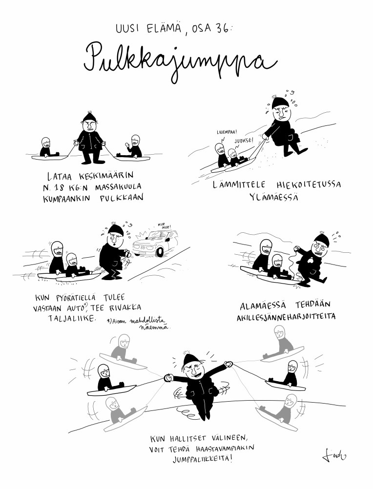 Mutta kiva kokemus yhtä kaikki, vaikka en koskaan mitään lukijapalautetta saanutkaan. Sanomalehti kanavana oli tietty myös vähän hidas kanava tämmöiselle blogipiirtelyyn tottuneelle. Hah! Mutta mitähän me sitten keksittäisiin harrastukseksi?