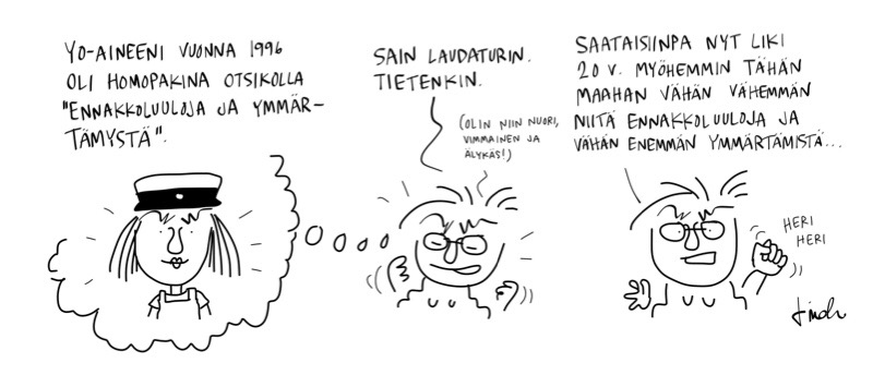 Tasa-arvokin olisi silleen niinku kiva juttu ja iloinen asia. Kuva | 20.11.2014 | saurau Tykkäätkö? Jaa Facebookissa(Avautuu uudessa ikkunassa) Facebook Jaa X:ssä(Avautuu uudessa ikkunassa) X Share on LinkedIn(Avautuu uudessa ikkunassa) LinkedIn Share on WhatsApp(Avautuu uudessa ikkunassa) WhatsApp Email a link to a friend(Avautuu uudessa ikkunassa) Sähköpostitse Tykkää Lataa...