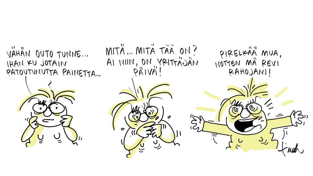 Yksinyrittäjän tiistai 14.10.2025 | saurau Tykkäätkö? Jaa Facebookissa(Avautuu uudessa ikkunassa) Facebook Click to share on X(Avautuu uudessa ikkunassa) X Jaa LinkedIn:ssä(Avautuu uudessa ikkunassa) LinkedIn Jaa WhatsApp palvelussa(Avautuu uudessa ikkunassa) WhatsApp Lähetä tämä kaverille sähköpostitse(Avautuu uudessa ikkunassa) Sähköpostitse Tykkää Lataa...