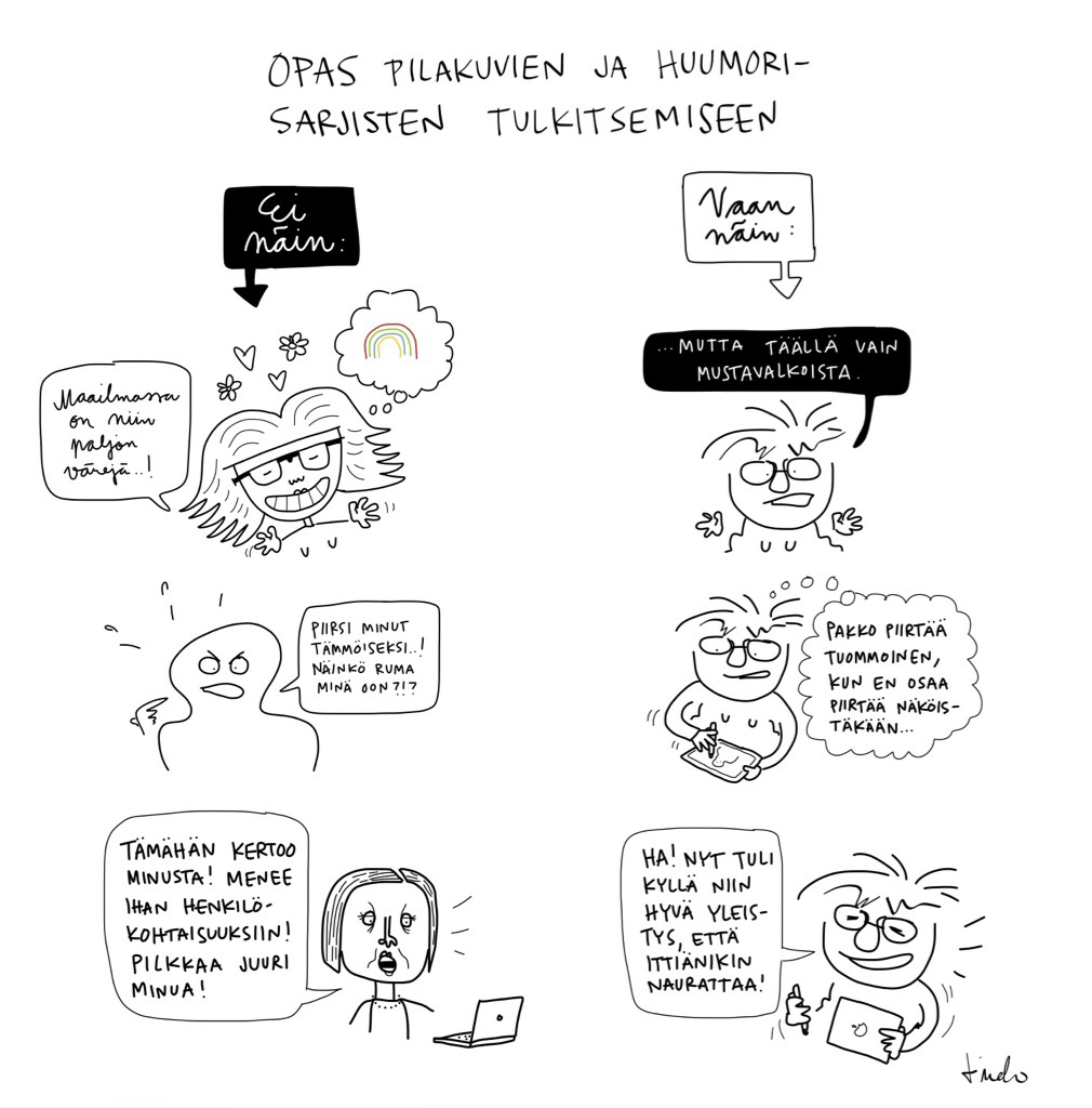 Opas pilakuvien ja huumorisarjisten tulkitsemiseen Kuva | 24.10.2014 | saurau Tykkäätkö? Jaa Facebookissa(Avautuu uudessa ikkunassa) Facebook Jaa X:ssä(Avautuu uudessa ikkunassa) X Share on LinkedIn(Avautuu uudessa ikkunassa) LinkedIn Share on WhatsApp(Avautuu uudessa ikkunassa) WhatsApp Email a link to a friend(Avautuu uudessa ikkunassa) Sähköpostitse Tykkää Lataa...